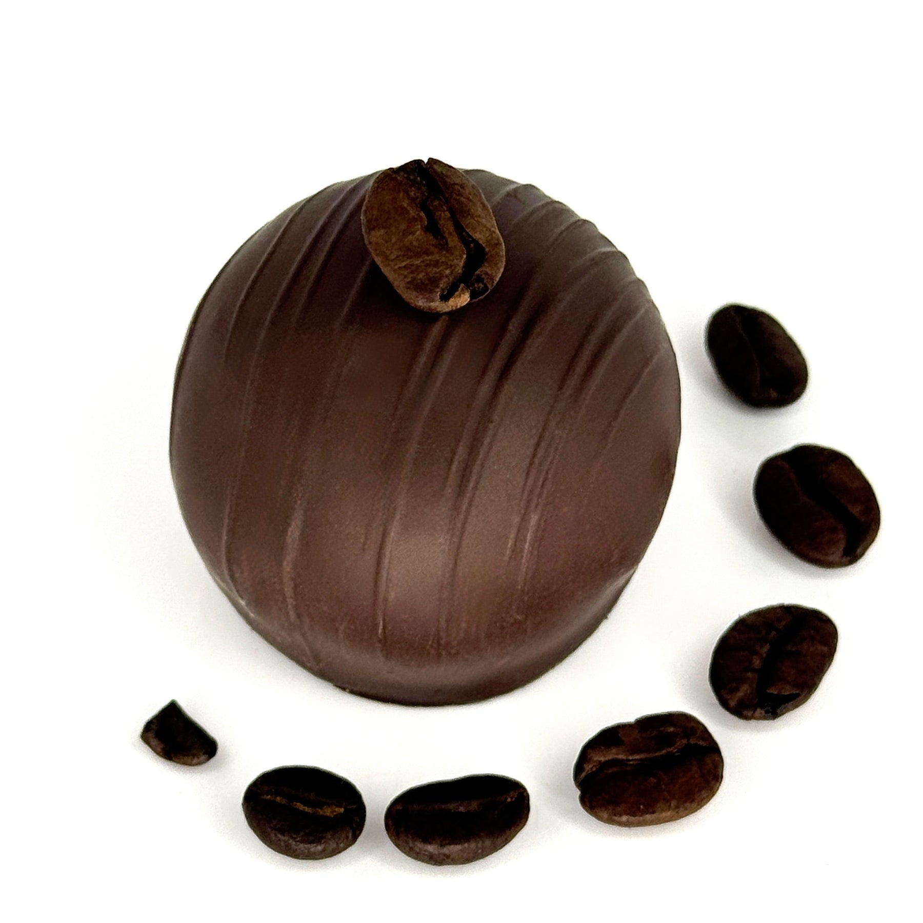 The smooth, creamy center is infused with bold coffee flavor, perfectly paired with your choice of a silky milk chocolate shell or a deep, intense dark chocolate shell.