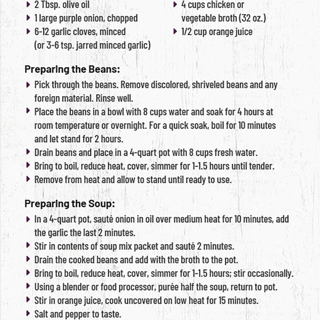 Disfrute de una sopa de frijoles negros abundante y sabrosa con esta mezcla fácil de preparar. Solo agregue algunos ingredientes frescos para obtener un sabor verdaderamente casero que es perfecto para cualquier comida.